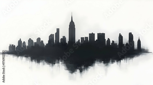 © Siasart Stock, Naklejka premium A black and white silhouette of the New York City skyline with a watercolor effect.