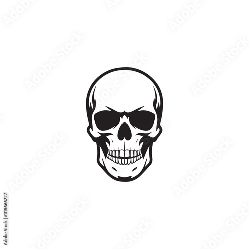 © techstore, Fototapeta premium A black and white skull silhouette illustration vector design in white background.