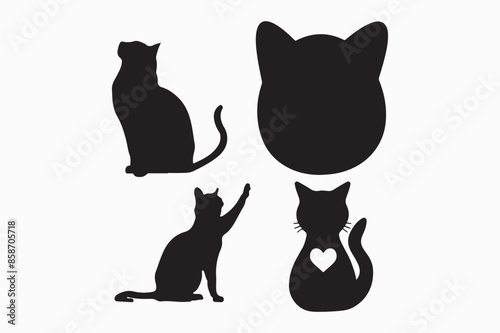 © Belayet2288, Obraz premium A black and white vector silhouette illustration of a Cat