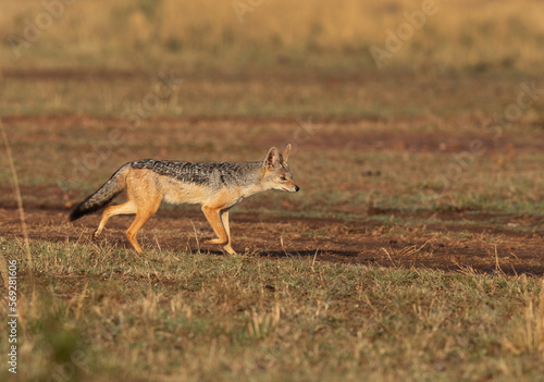 Fototapeta premium A black-backed Jackal in the savannah grassland, Masai mara, Kenya