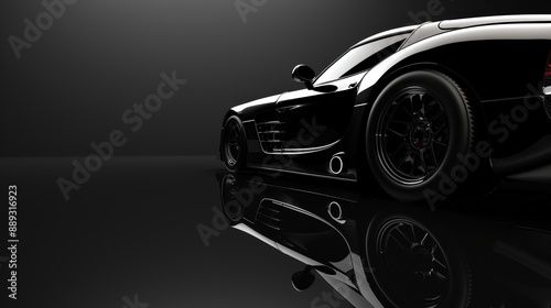 Fototapeta premium A black background with a glossy finish and faint reflections giving it a...