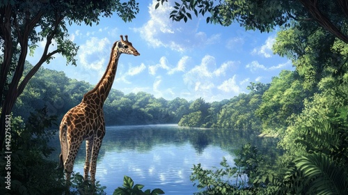 © amonrat, Obraz premium A black bear climbing a tree, with dense green leaves all around