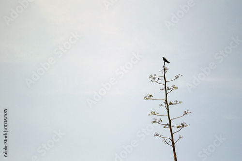 © ronettejohns, Obraz premium A black bird on an isolated tree.