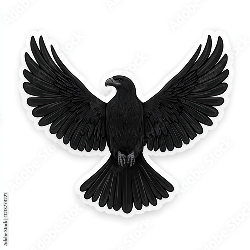© lestari, Naklejka premium A black bird with wings spread on a white background for sticker design or graphic use