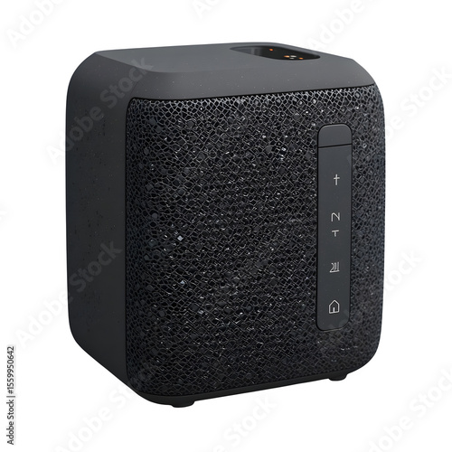 © Makhjum Hossain , Obraz premium A black bluetooth speaker isolated on transparent background