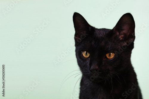 © AKA-RA, Obraz premium A black cat on a light blue backdrop.
