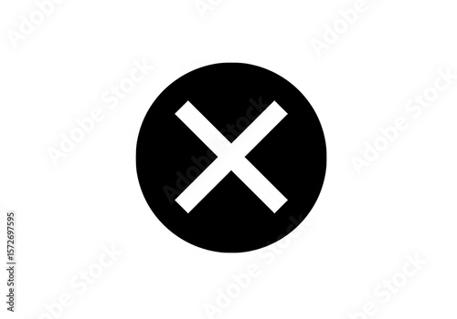 Obraz premium A black circle with a white cross mark represents cancellation or deletion on...