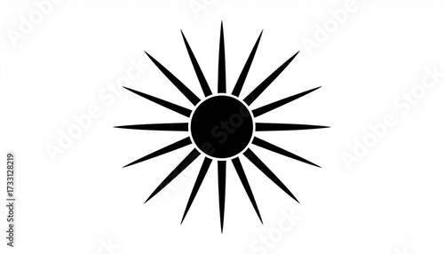 © Indira, Obraz premium A black circle with multiple outward black triangular points on a white background