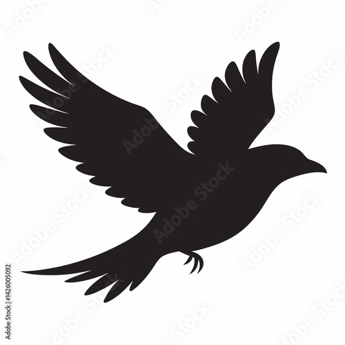 © ShirinSultana, Obraz premium A black cow bird is flying alone silhouette vector illustration design isolated on white background