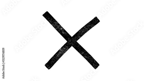 © LabioLoops, Obraz premium A black cross or X mark, drawn with a brush, with little dots inside it, on a white background.