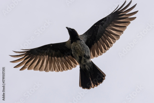 © Ivan, Obraz premium a black crow with outstretched wings in flight
