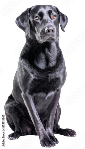 © Korawan, Fototapeta premium A black dog is sitting on a white background