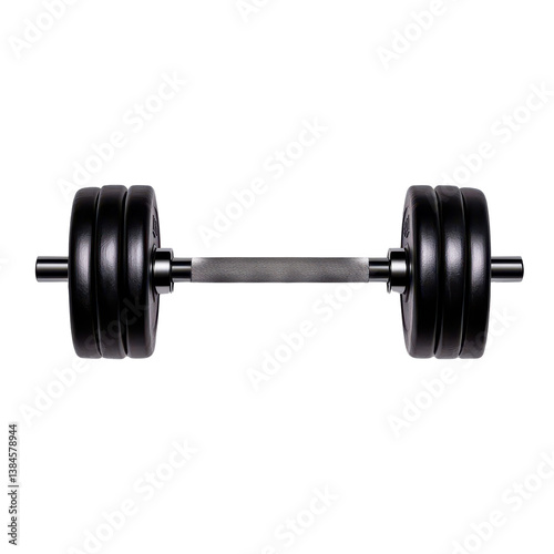 Naklejka premium A black dumbbell for strength training and fitness workouts isolated against...