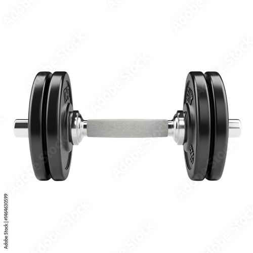 Fototapeta premium A black dumbbell isolated on white background showing its weight plates and...