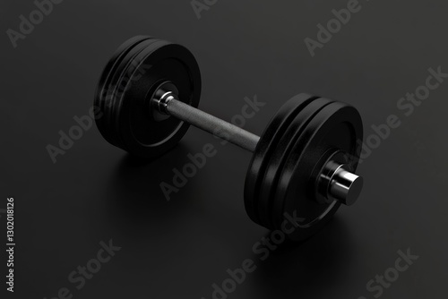 © MrHamster, Naklejka premium A black dumbbell resting on a dark surface background