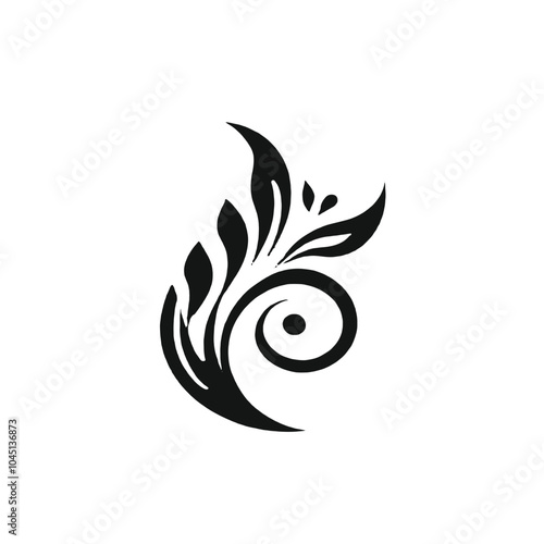 © smpiyal, Naklejka premium A black floral or leaf-like decorative design with curving lines and swirls