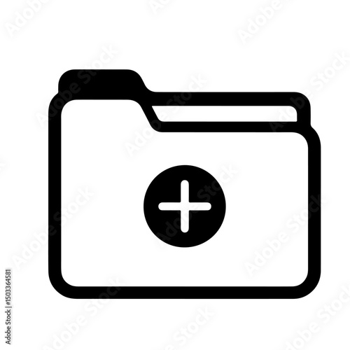 © Zulfa, Obraz premium A black folder icon with a plus sign inside, symbolizing new folder creation.