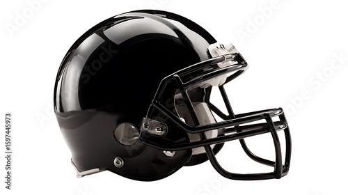 Naklejka premium A black football helmet, shiny and with a face mask. .