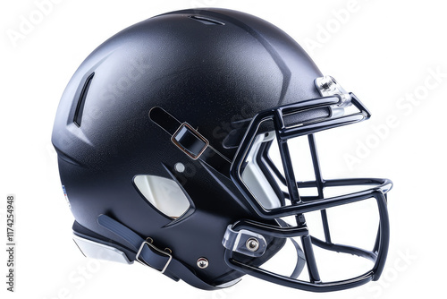 © BersyukurStock, Fototapeta premium A black football helmet showcasing protective gear for athletes in contact sports. isolated on white background