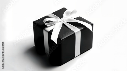 © Mst, Obraz premium A black gift box with white ribbon and bow