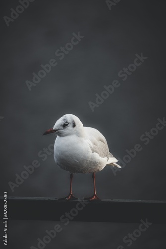 Fototapeta premium a Black-headed gull perched on a railing