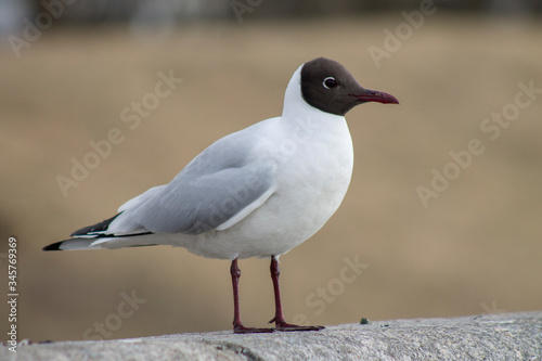 Fototapeta premium a black-headed gull sits on the parapet