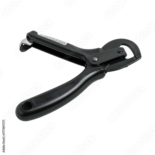 © Dg, Obraz premium A black, hinged kitchen tool featuring a blade and handle