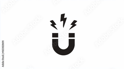 © W saputro, Fototapeta premium A black horseshoe magnet with three emanating lightning bolts, white background