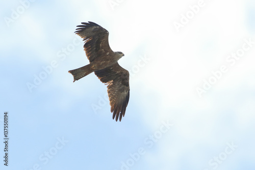Obraz premium A Black kite, Milvus migrans, migrating over the straits of Gibraltar.