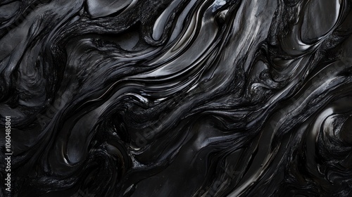 © Prapan, Obraz premium a black lava stone texture, featuring a smooth, glossy finish that reflects light in unique ways.