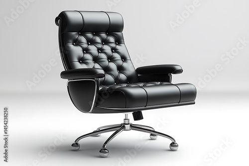 Naklejka premium A black leather executive chair with tufted upholstery is isolated against white background