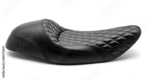 Obraz premium A black leather motorcycle seat with diamond stitching on a white background...