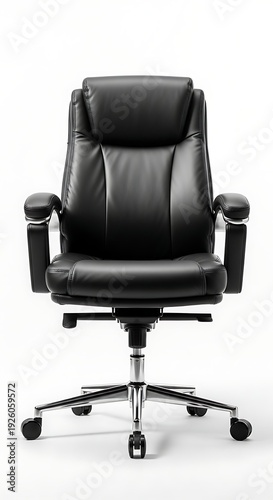 © Arif, Fototapeta premium A black leather office chair on a silver base