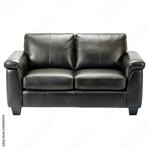 Fototapeta premium A black leather two-seater sofa isolated on transparent background