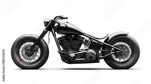 © CreativeCreations, Fototapeta premium A black motorcycle isolated on a white background