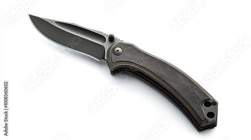 © Hungarian, Fototapeta premium A Black Pocket Knife with a Partially Opened Blade