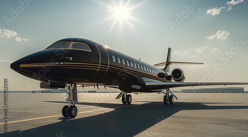 © visoot, Obraz premium A black private jet is standing in the sunny airport.