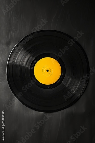© Media Srock, Obraz premium A black record with red swirls on it. The table is dark
