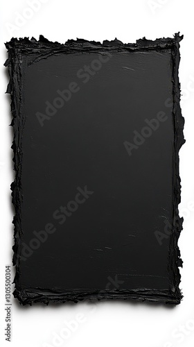 © NKTN, Obraz premium A black rectangular frame with a rough, textured border stands out against a stark white background
