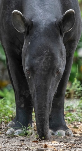 © Wirestock, Naklejka premium a black rhino standing in some tall grass with his back to the camera