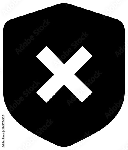 Fototapeta premium A black shield icon with a white X on a plain background
