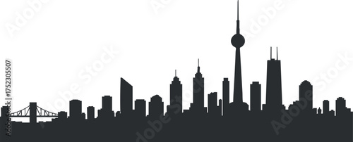 Obraz premium A black silhouette of a city skyline featuring various skyscrapers and...
