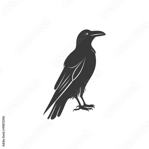 Fototapeta premium A black silhouette of a crow, standing on a white background