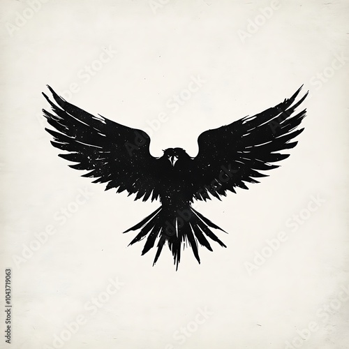 © Raffaza, Obraz premium A black silhouette of a hawk with its wings spread against a white background.