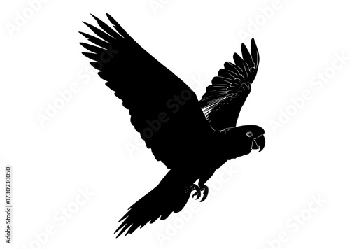 © Alloca Design Studio, Obraz premium a black silhouette of a parrot in flightbird, black, eagle, flight, fly, parrot, profile, sky, spread, white, wing
