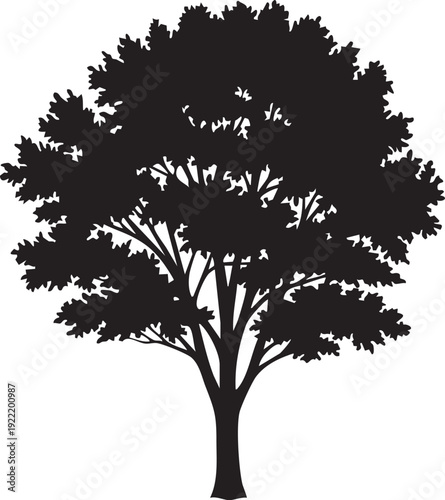 © Mahemud, Obraz premium A black silhouette of a tree with a thick trunk and sprawling branches against a white background