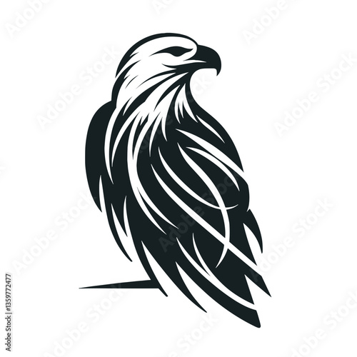 Fototapeta premium A black silhouette of bald eagle, stroke lines, minimalist art style, vector,...