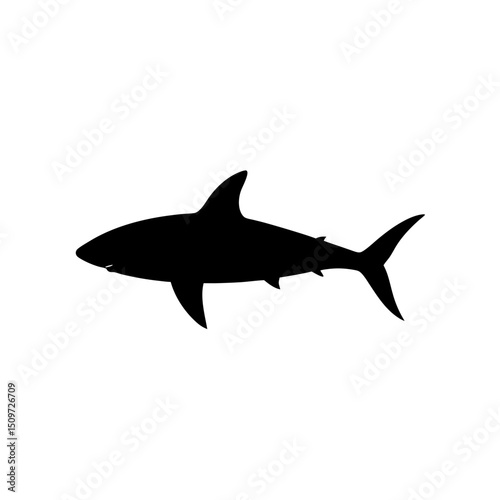 © Sorodini, Obraz premium A Black Silhouette Vector Illustration of a Swimming Shark from a Side Profile