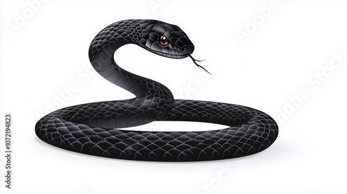 © Volha, Obraz premium A black snake on a white background