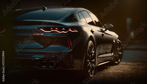 Fototapeta premium a black sports car parked in a parking lot background wallpaper. generative ai
